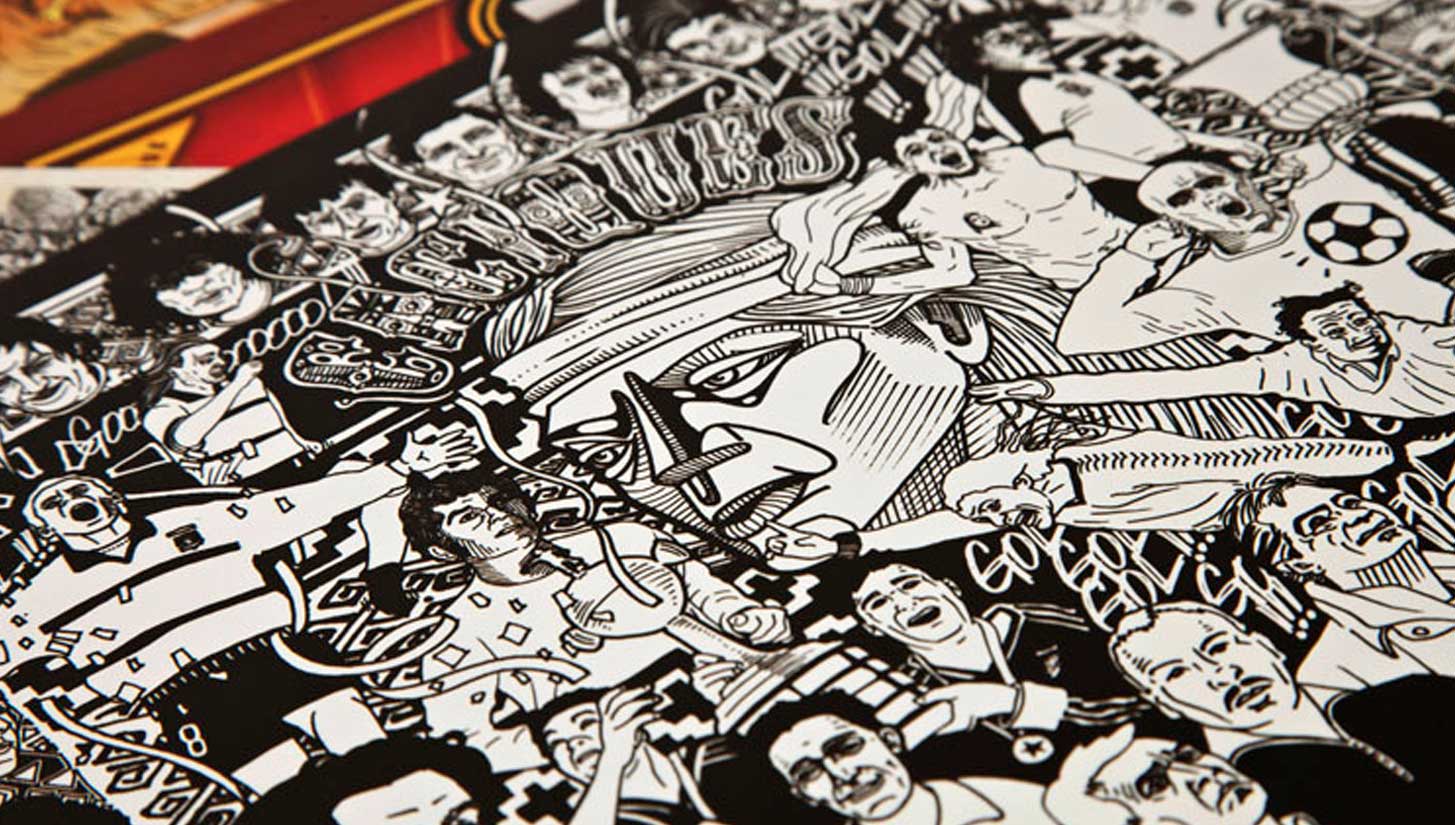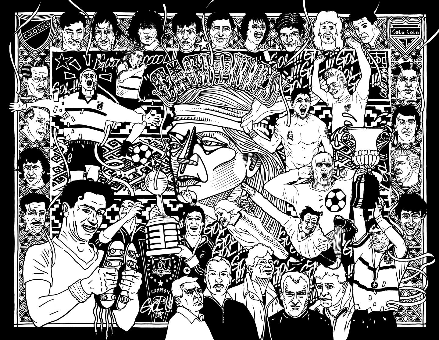 COLO COLO PROJECT Ilustracion y diseño del logotipo para Proyecto Colectivo “Campeones de estampa” sobre el club Colo-Colo. Rotulador y composición digital / Cristian Herrera López / Illustration and logo design for the collective project “Campeones de estampa” about the club Colo-colo. Marker and digital composition.Santiago de Chile, 2010.