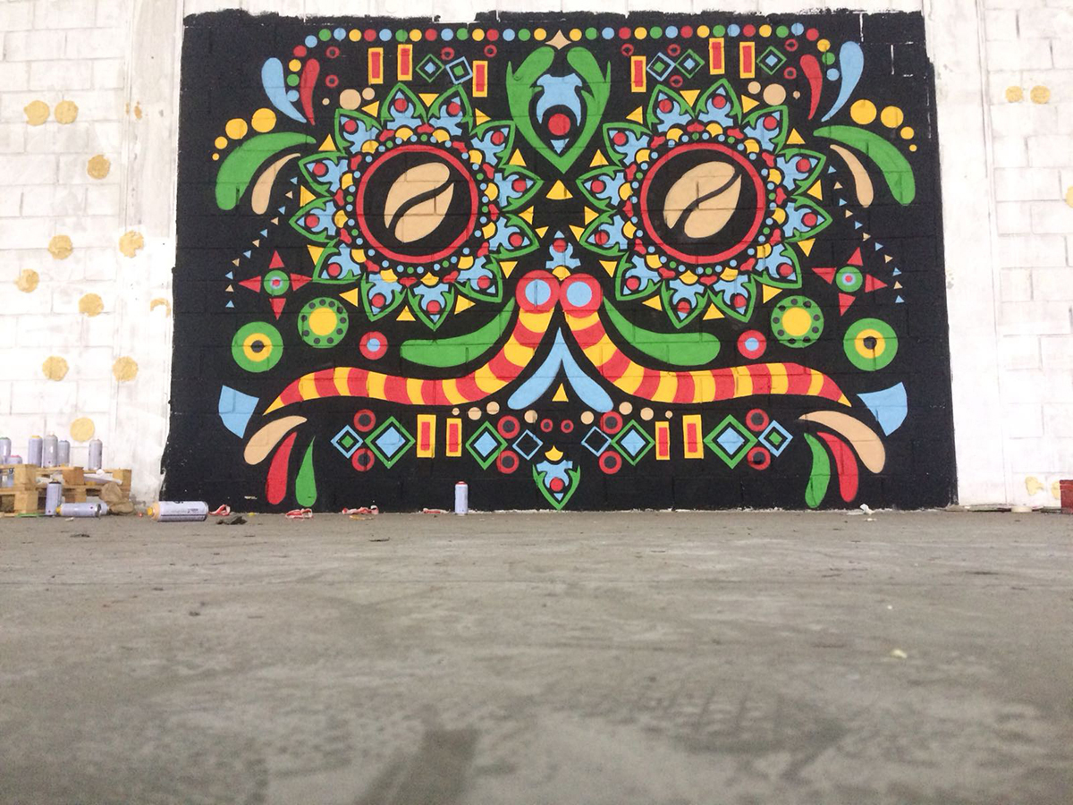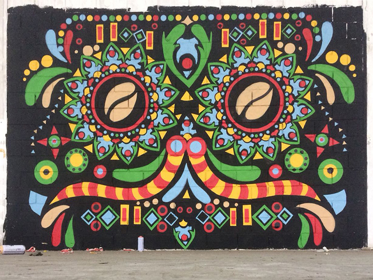 Mural made on the occasion of the “Day of Mexican pride in the world” for Kaiku Caffè Latte / Mexican Flavors.