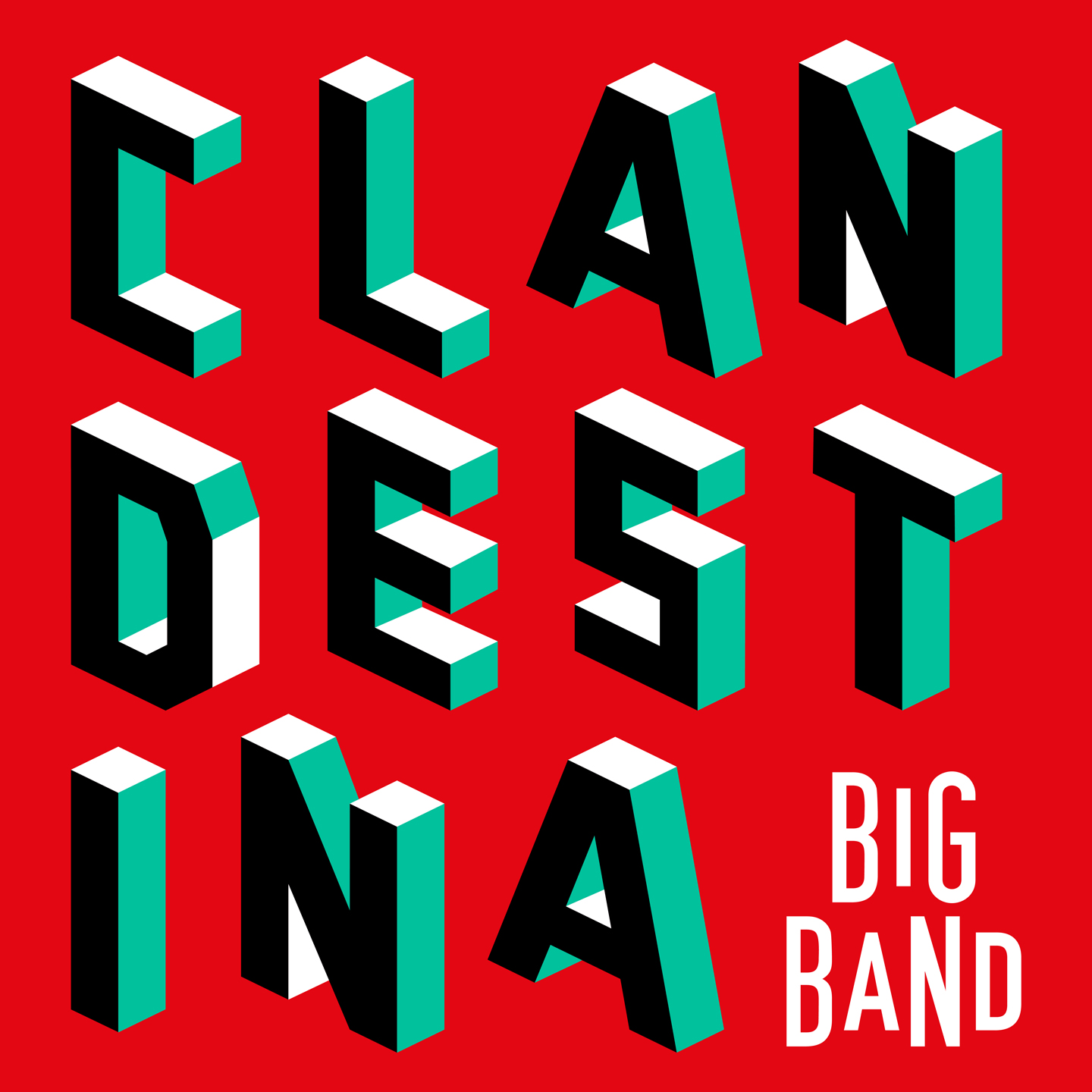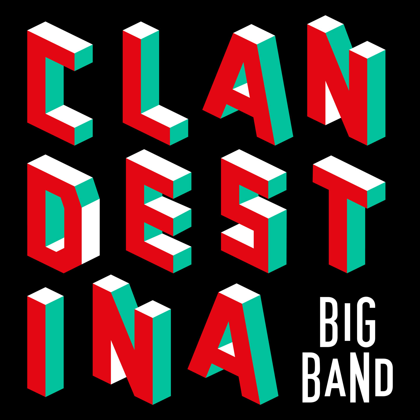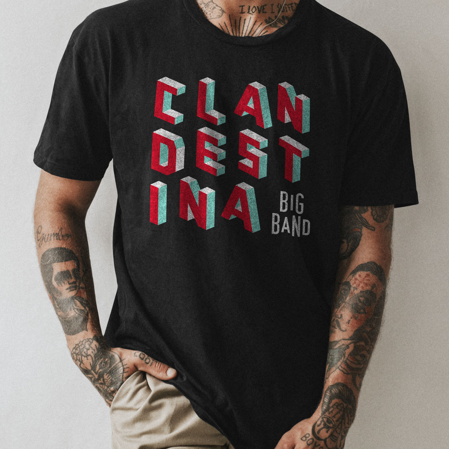 Diseño de Logotipo, Camisetas Tipografía y posa vasos, para Clandestina Big Band: Agrupación de Jazz, Swing y Count Basie.