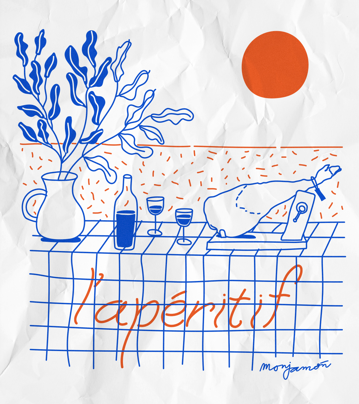 Ilustración y diseño para creación de contenidos para post de instagram para la cuenta de Monjamón Para Distrito Agencia, Madrid.