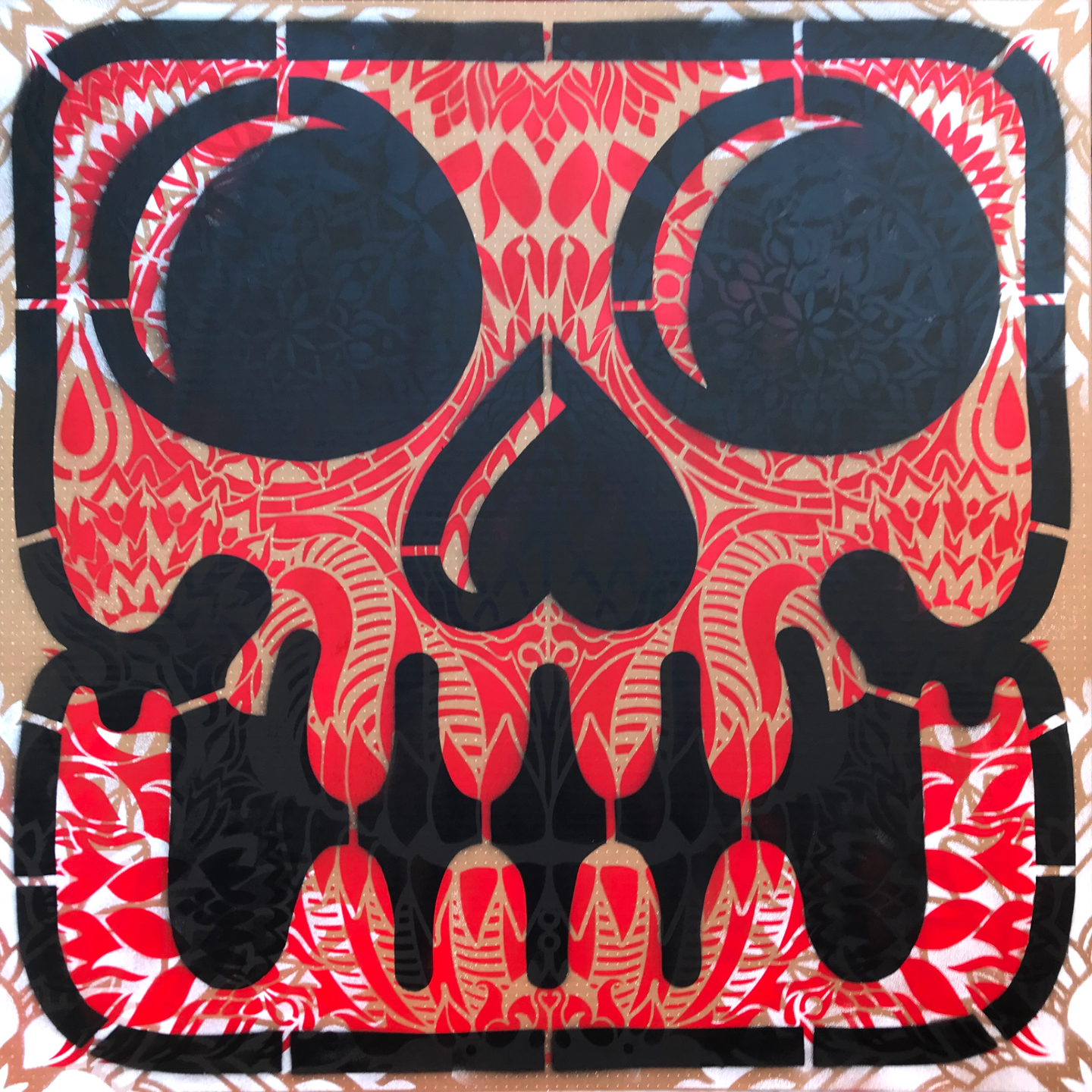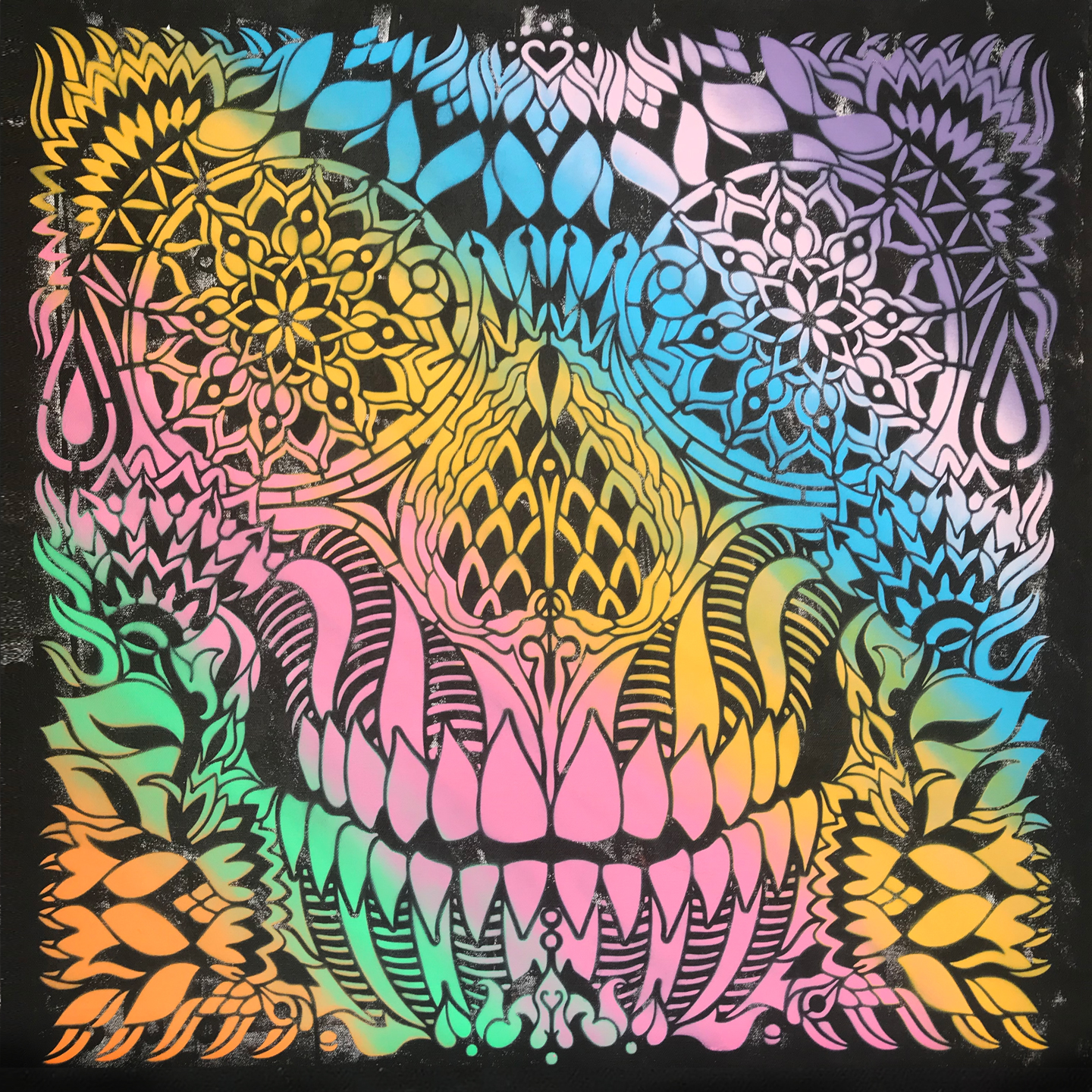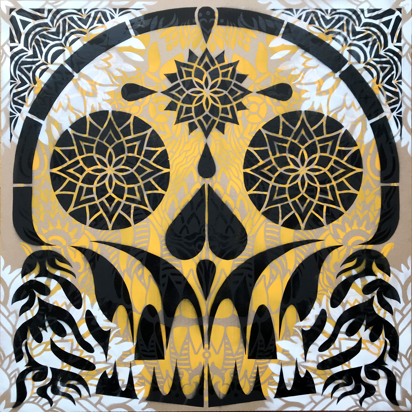 Serie de Stencil 70 x 70 cm, sprays plata y colorful sobre madera y lienzo,