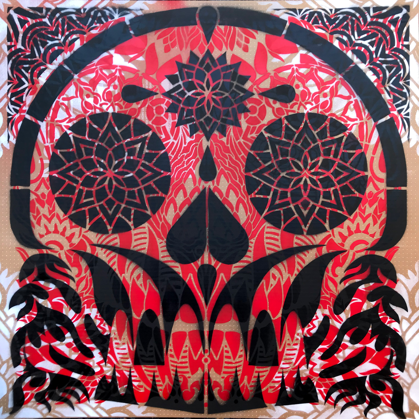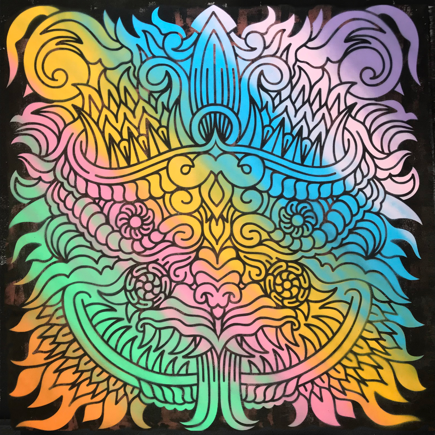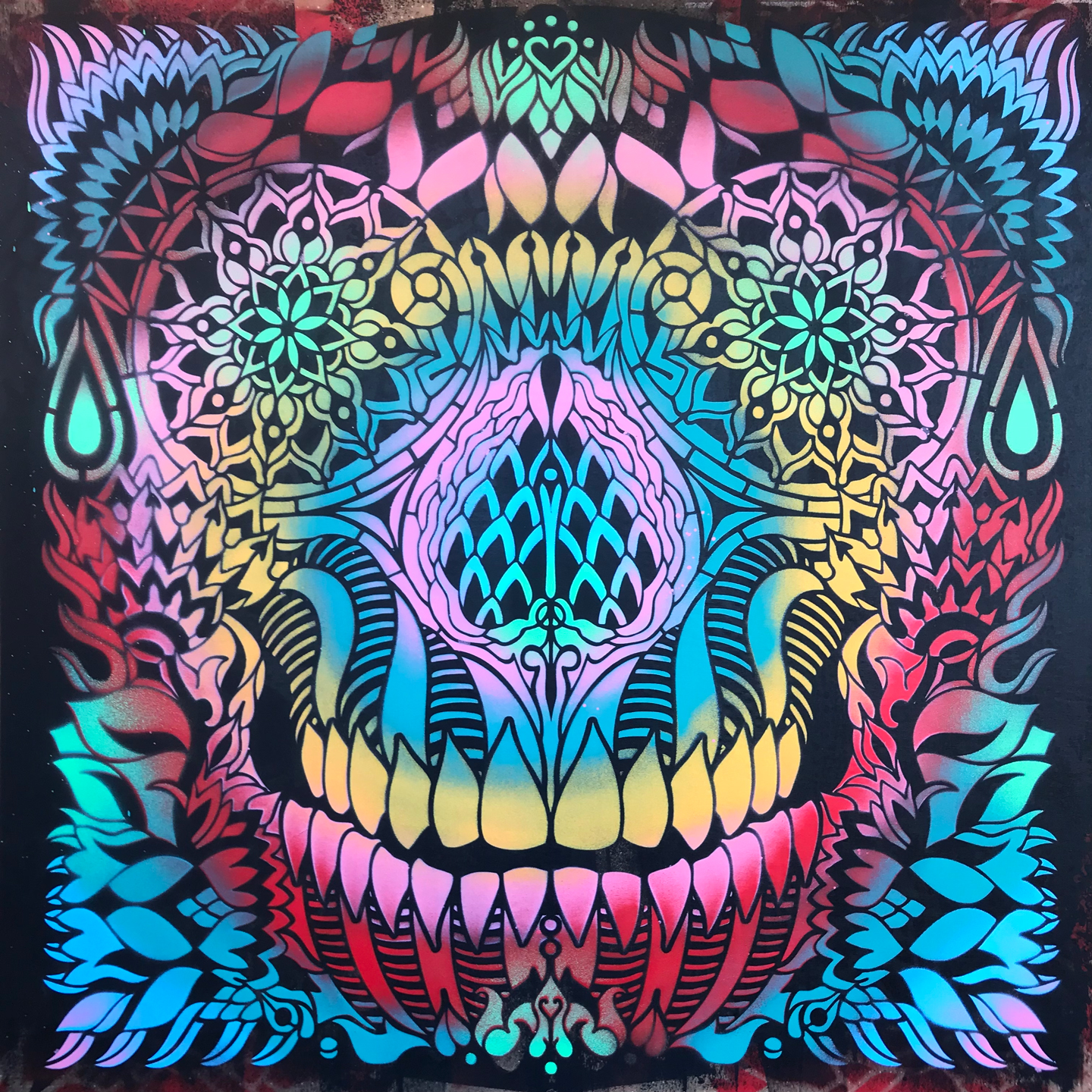 Serie de Stencil 70 x 70 cm, sprays plata y colorful sobre madera y lienzo,