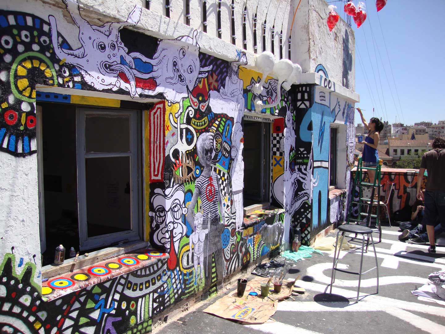 El sbado 18 de julio con CONFUSION Group pintamos un mural en la azotea del 5 piso del Patio Maravillas con diversos artistas y colectivos, dentro de las actividades que se desarrollavan en el Festival de Crtica Urbana. Madrid, 09. On July 18th sbado CONFUSION Group painted a mural on the roof of the 5th floor of the Patio Maravillas with various artists and groups, within the activities at the Festival Crtica Urbana. Madrid, 09.